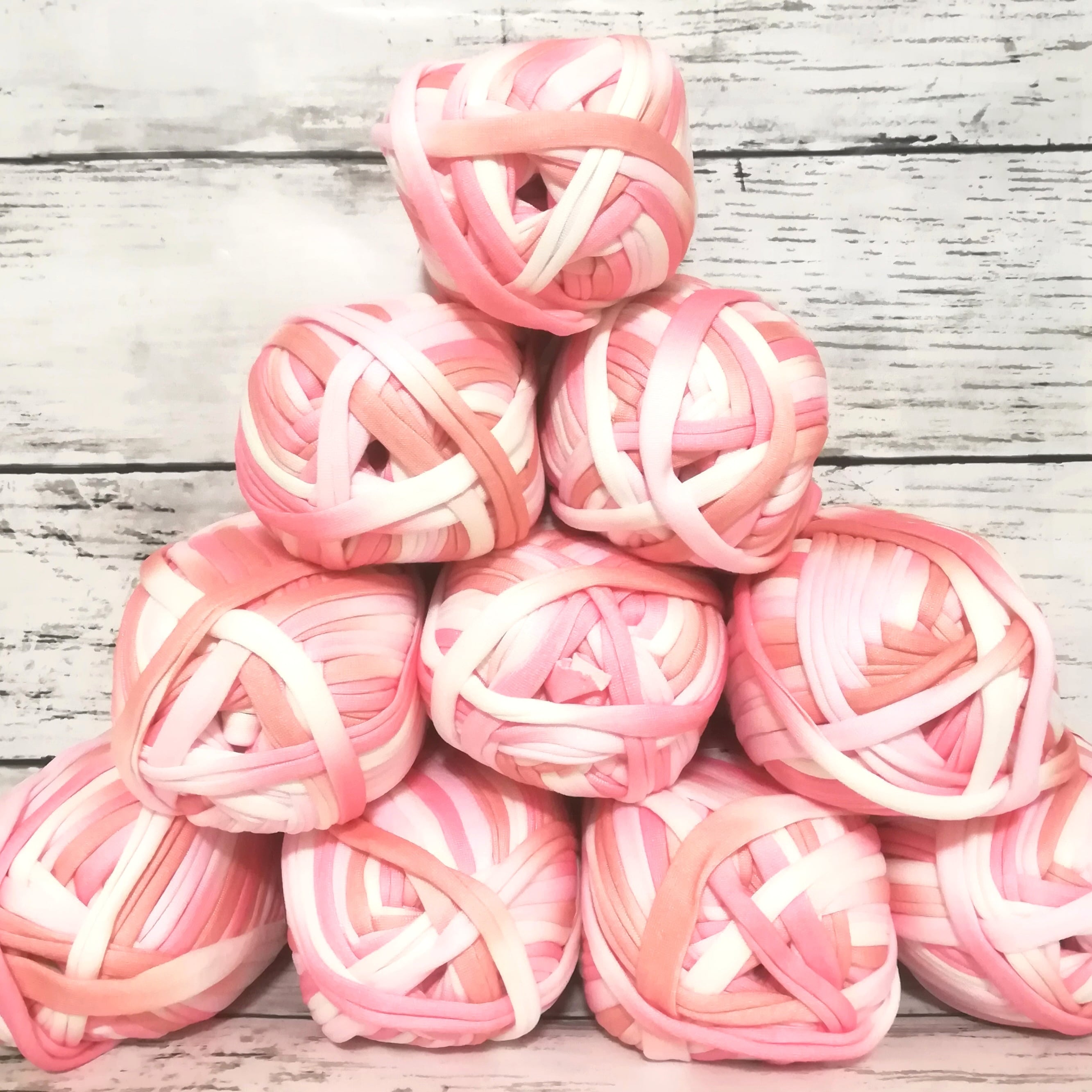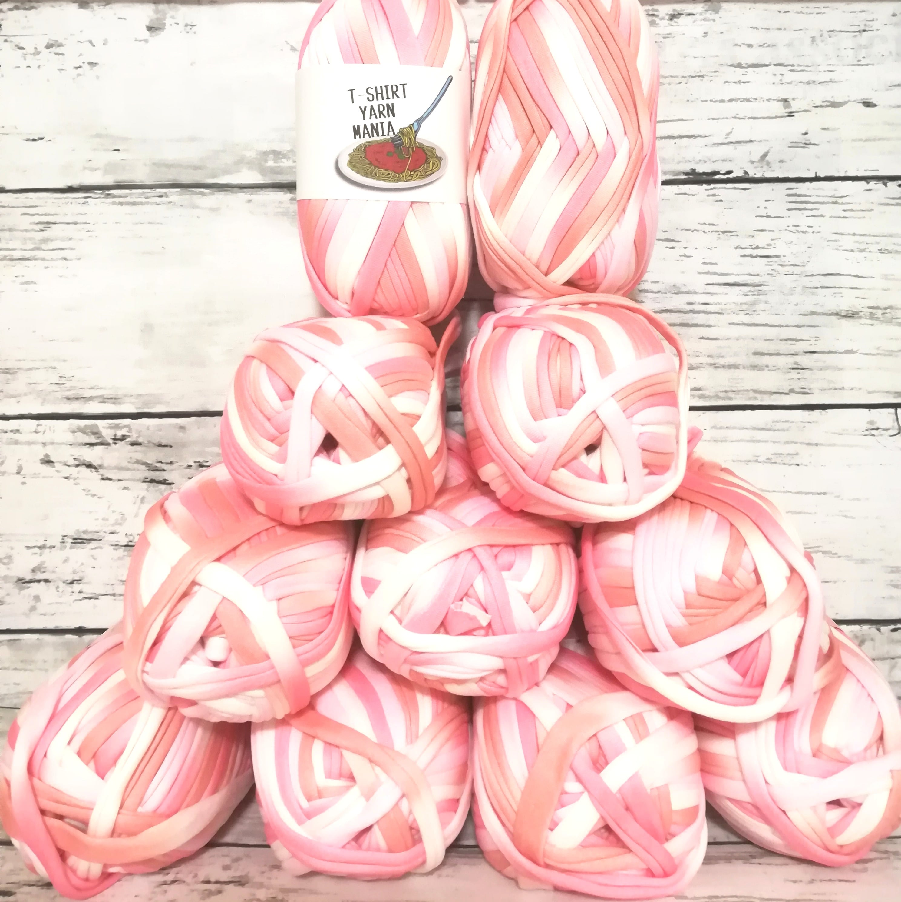 NEW カラフル ピンク✗ホワイト✗ライトピンク (グラデーション) 1玉=30m Tシャツヤーン 糸 100g | T-SHIRT YARN MANIA ~Tシャツヤーンマニア~ Tシャツヤーン専門店