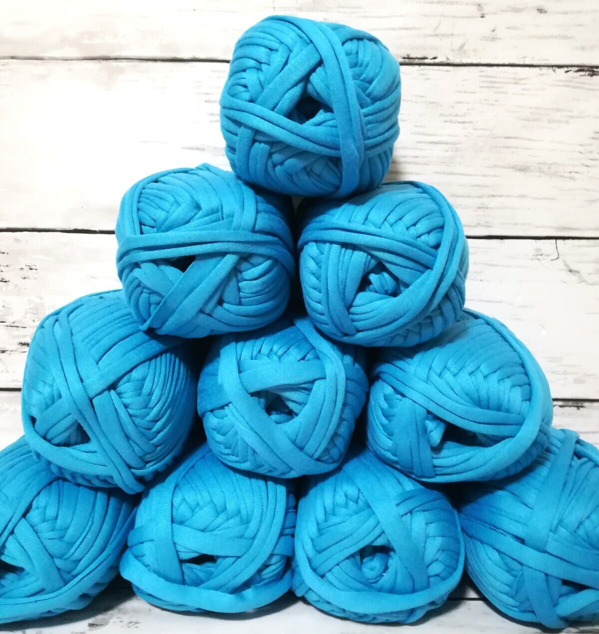 Tシャツ カットソー から出た裁断余分を糸としてアップサイクルした 編み糸 です。
